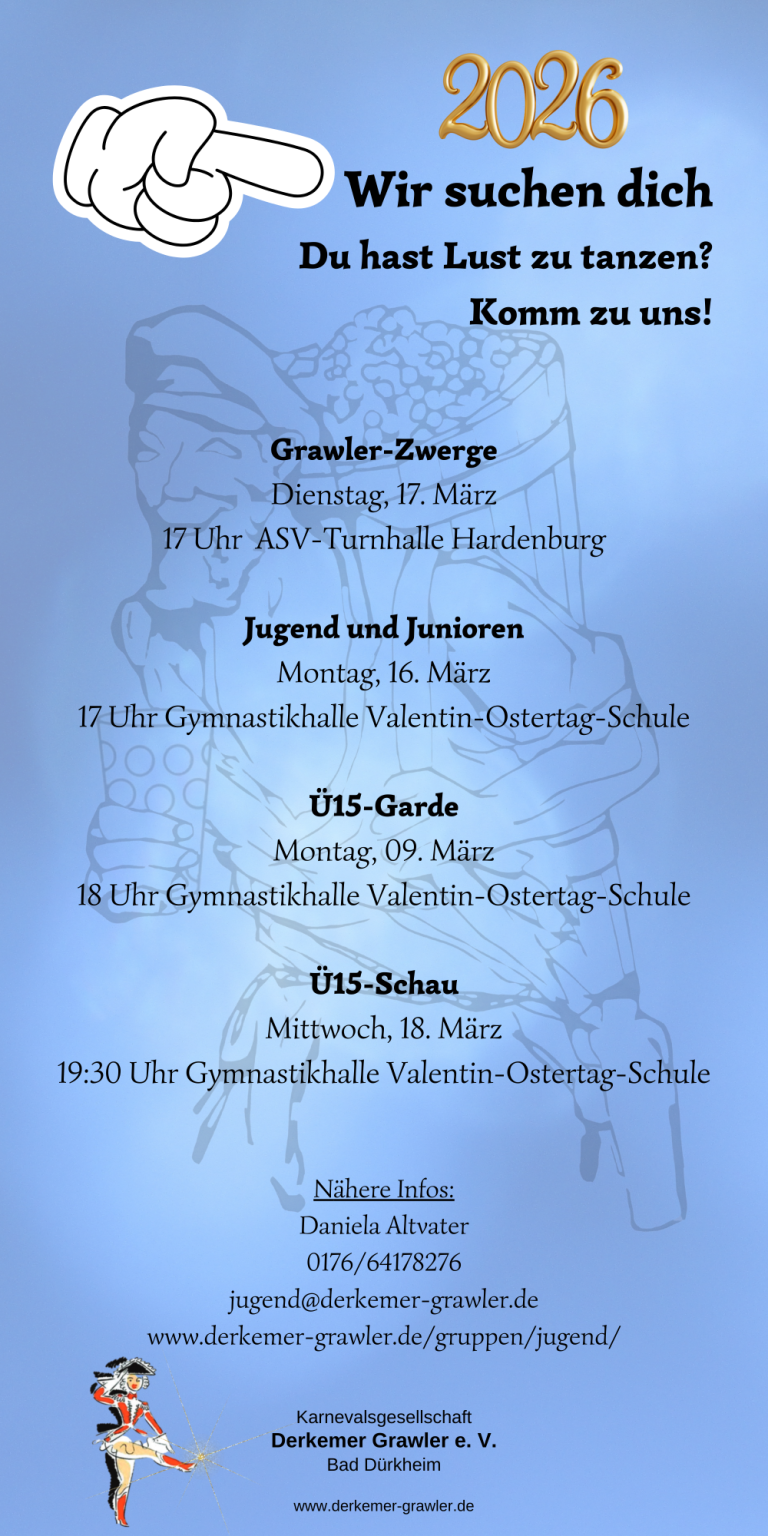 Erwünscht, aber nicht zwingend erforderlich ist Tanz- oder Trainererfahrung im Garde-/Schautanz oder ähnliches.