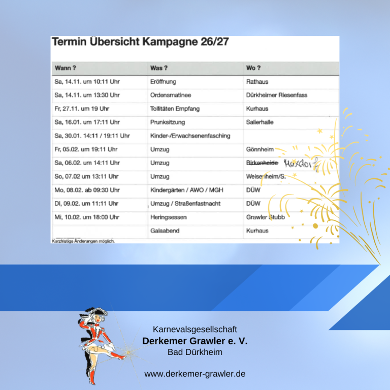 Die Karnevalgesellschaft Derkemer Grawler e.V. wurde 1949 gegründet und hat seitdem unzählige Erinnerungen geschaffen. Wir sind stolz darauf, das kulturelle Erbe des Karnevals zu bewahren und unseren Mitgliedern und der Gemeinschaft Freude zu bringen.